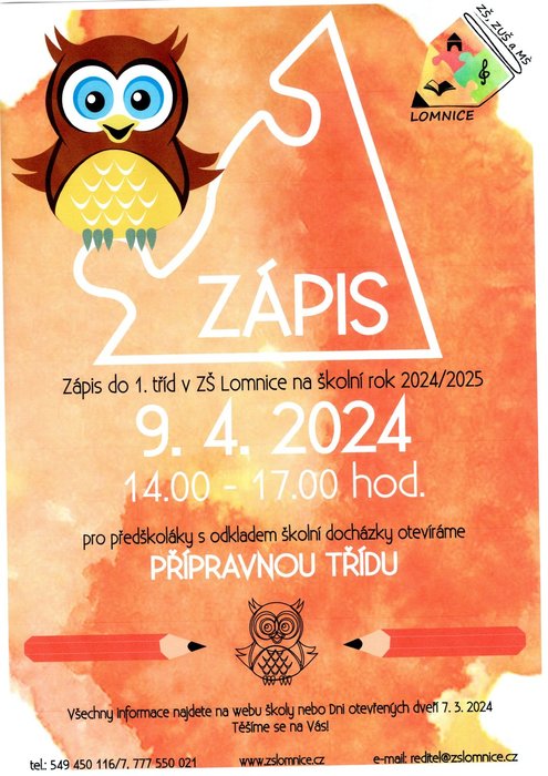 Úvod > Aktuality > Zápis do první třidy ZŠ Lomnice, přípravné třídy